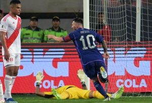 During the game against Peru, Lionel Messi opened the scoring after 32 minutes and quickly added a second with a spectacular finish.