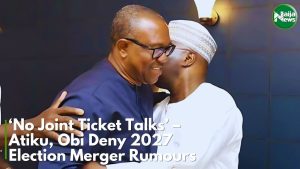 NaijaNews Tv No Joint Ticket Talks – Atiku, Peter Obi Deny 2027 Election Merger Rumours by NSO Admin December 2, 2024 written by NSO Admin December 2, 2024 0 comment Share 0FacebookTwitterPinterestEmail 3 The post No Joint Ticket Talks – Atiku, Peter Obi Deny 2027 Election Merger Rumours appeared first on Naija News. Spread the love Share 0 FacebookTwitterPinterestEmail NSO Admin previous post Nigeria Faces Profound Energy Crisis – Nnaji next post NPFL Updates: Rangers Coach Declares Enyimba Best Club In Nigeria, Ikorodu Not Chasing Title, Others You may also like El-Rufai Compares President Tinubu To Paul Biya September 22, 2025 Patience Begs Jonathan Not To Contest For President... September 2, 2025 Bobrisky Fingers VDM In Phyna’s Sister’s ‘Botched’ Case September 2, 2025 GTBank: What Really Happened On The Day EFCC... May 14, 2025 ‘I Don’t Wish To Go Back’ – Fubara... May 14, 2025 Tragedy: Teenager Takes Own Life Over Low UTME... May 14, 2025 State Of The Nation: Amaechi Blasts Governors For... May 14, 2025 Details: How Famous TikToker Died During Live Stream April 27, 2025 Nyesom Wike Opens Up On Collapsing In Abuja,... April 5, 2025 Senator Abbo Exposes Akpabio’s Plot Against Senator Natasha April 5, 2025