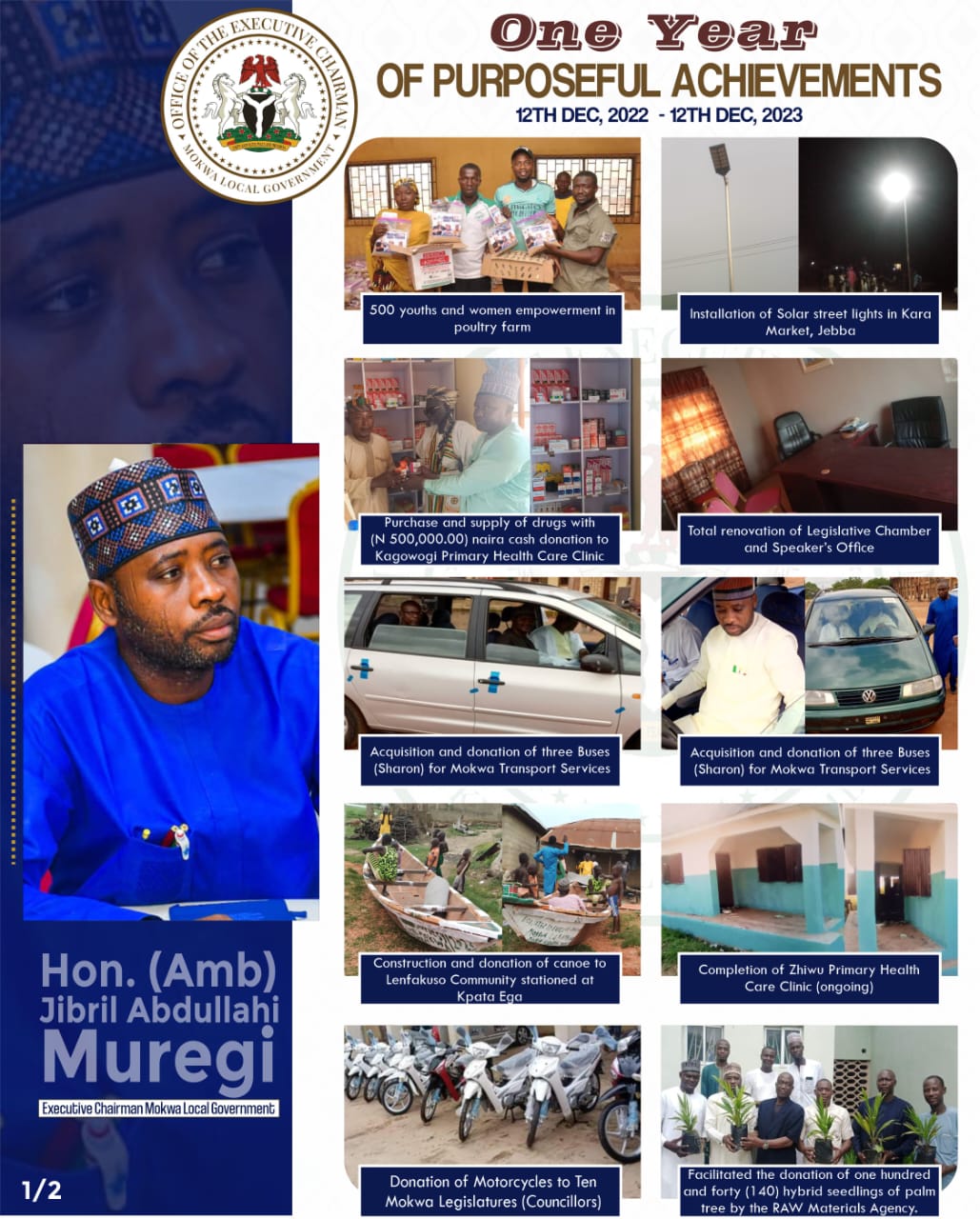 - Registration of Mokwa Local Government Football Team into the Niger State Governor’s Cup football competition 2023 with donation of a set of Jersey, welfare packages and accommodation.
