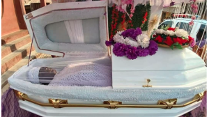 In one of the pictures, the late actor’s casket, adorned with gold trimmings and floral decorations, lies open.