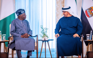 The statement released by UAE, “President His Highness Sheikh Mohamed bin Zayed Al Nahyan today met with Bola Ahmed Tinubu, President of the Federal Republic of Nigeria, who is on a working visit to the UAE.